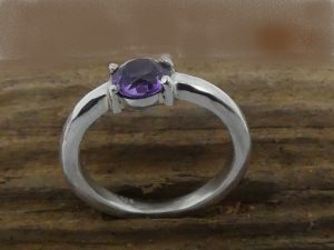 Zunächst mal ein kleiner Ring mit einem geschliffenen Amethyst. Den Stein hatte mit eine Bekannte aus altem Schmuck zur Verfügung gestellt. Hier kommt er, glaube ich, noch mal wirkungsvoll zu Geltung. Der Rest folgt in den nächsten Tagen.